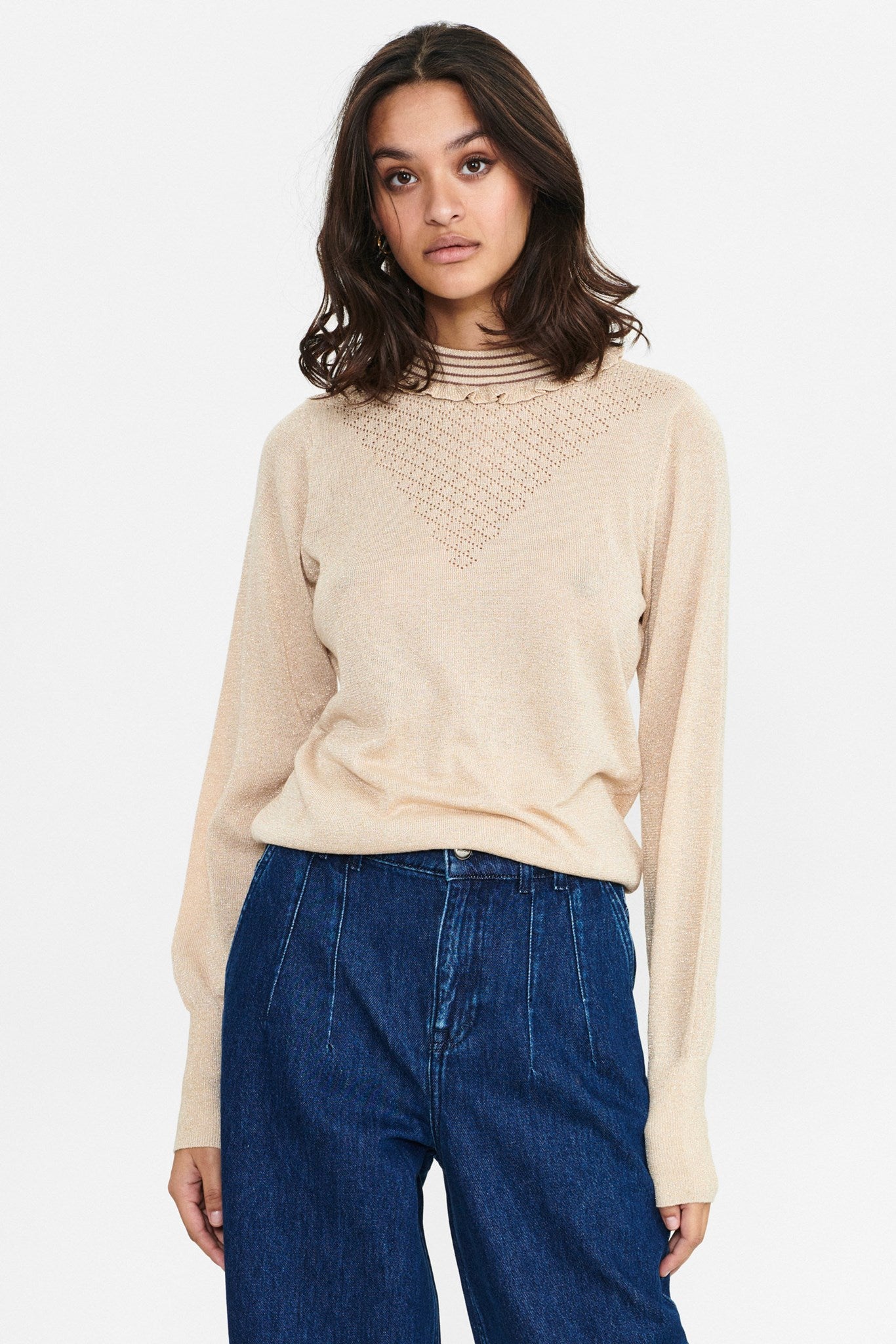 Rund halsudskæring med flæser