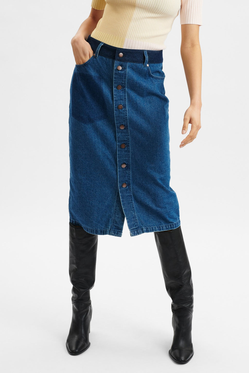 NUEDUZI SKIRT - Medium Blue Denim