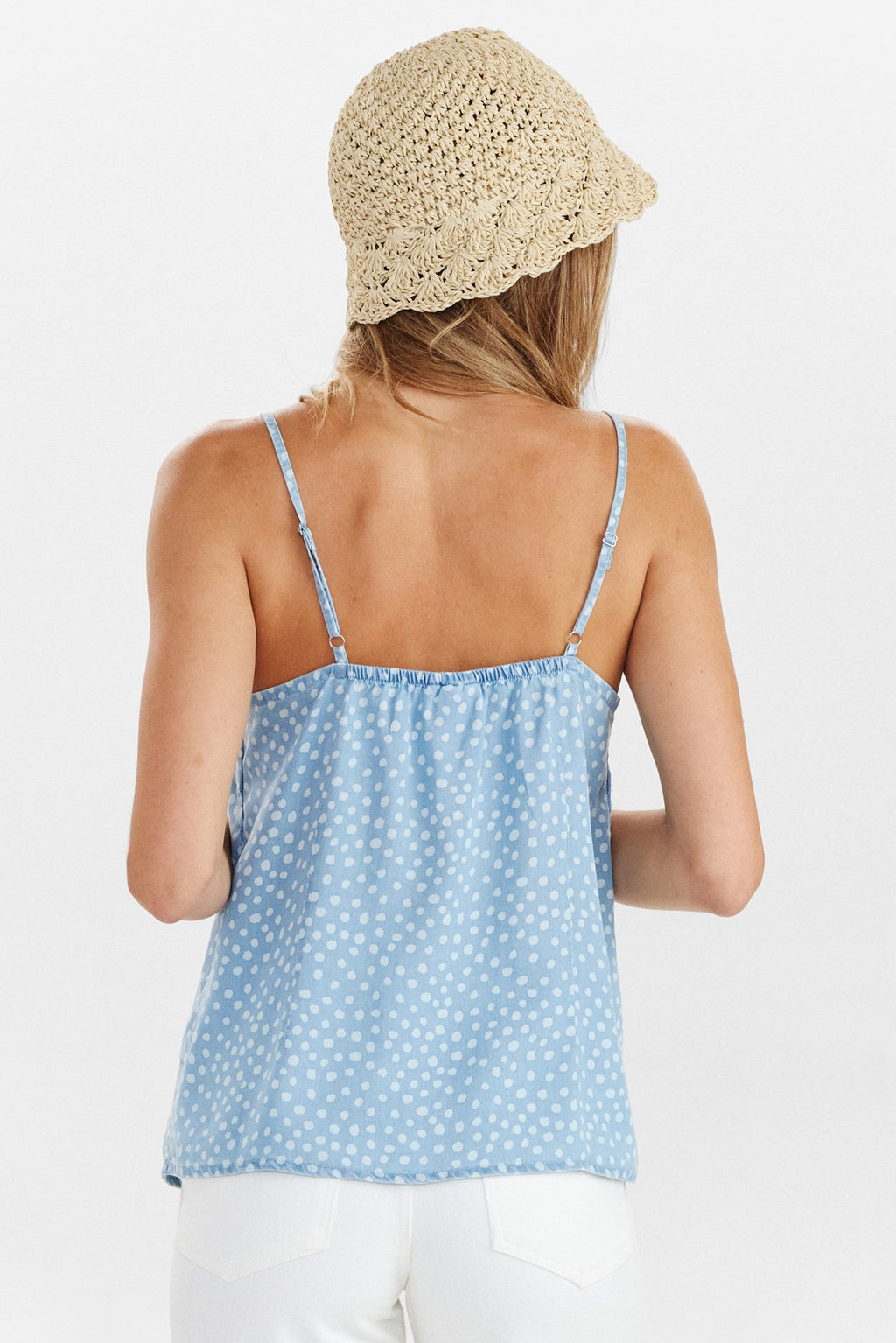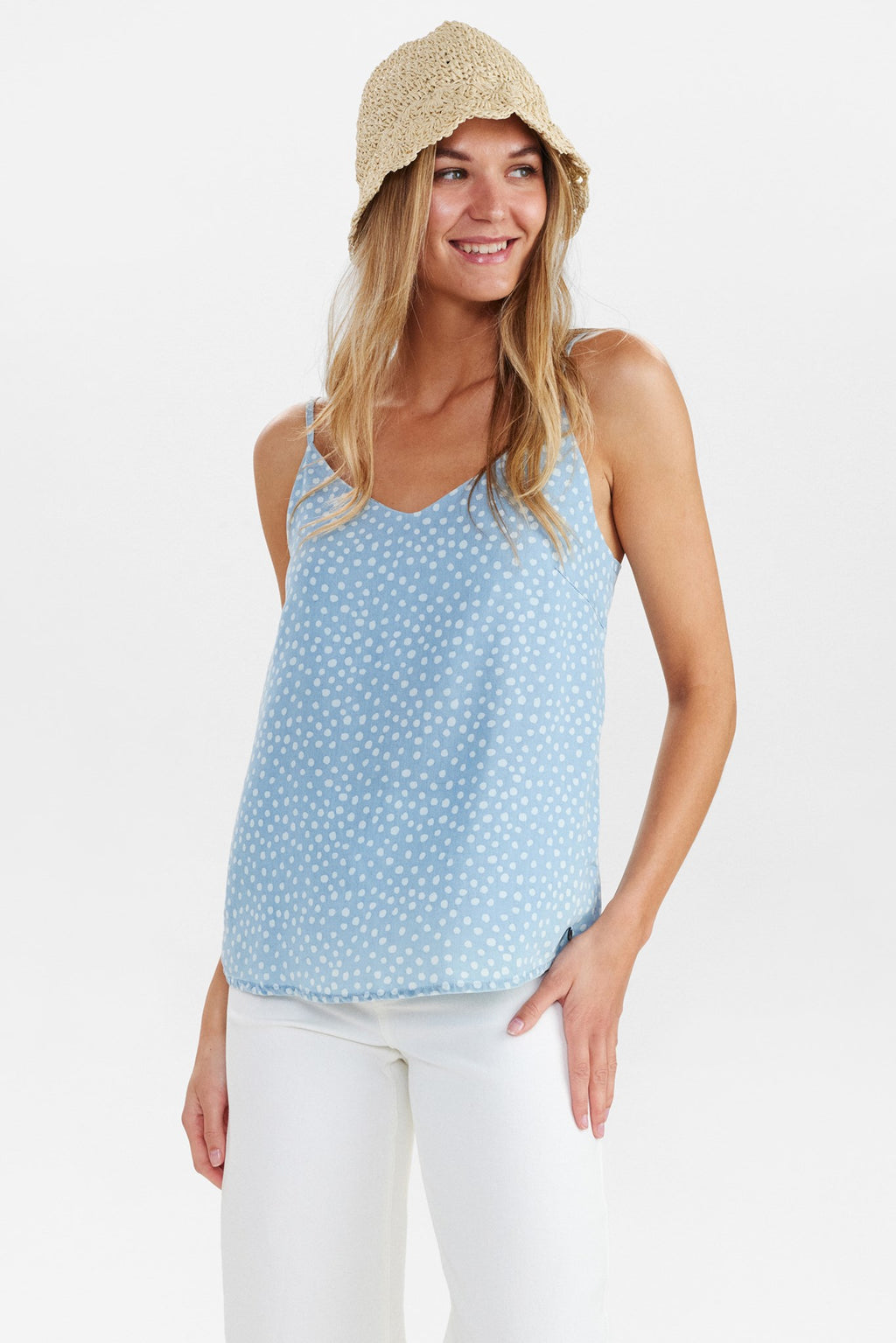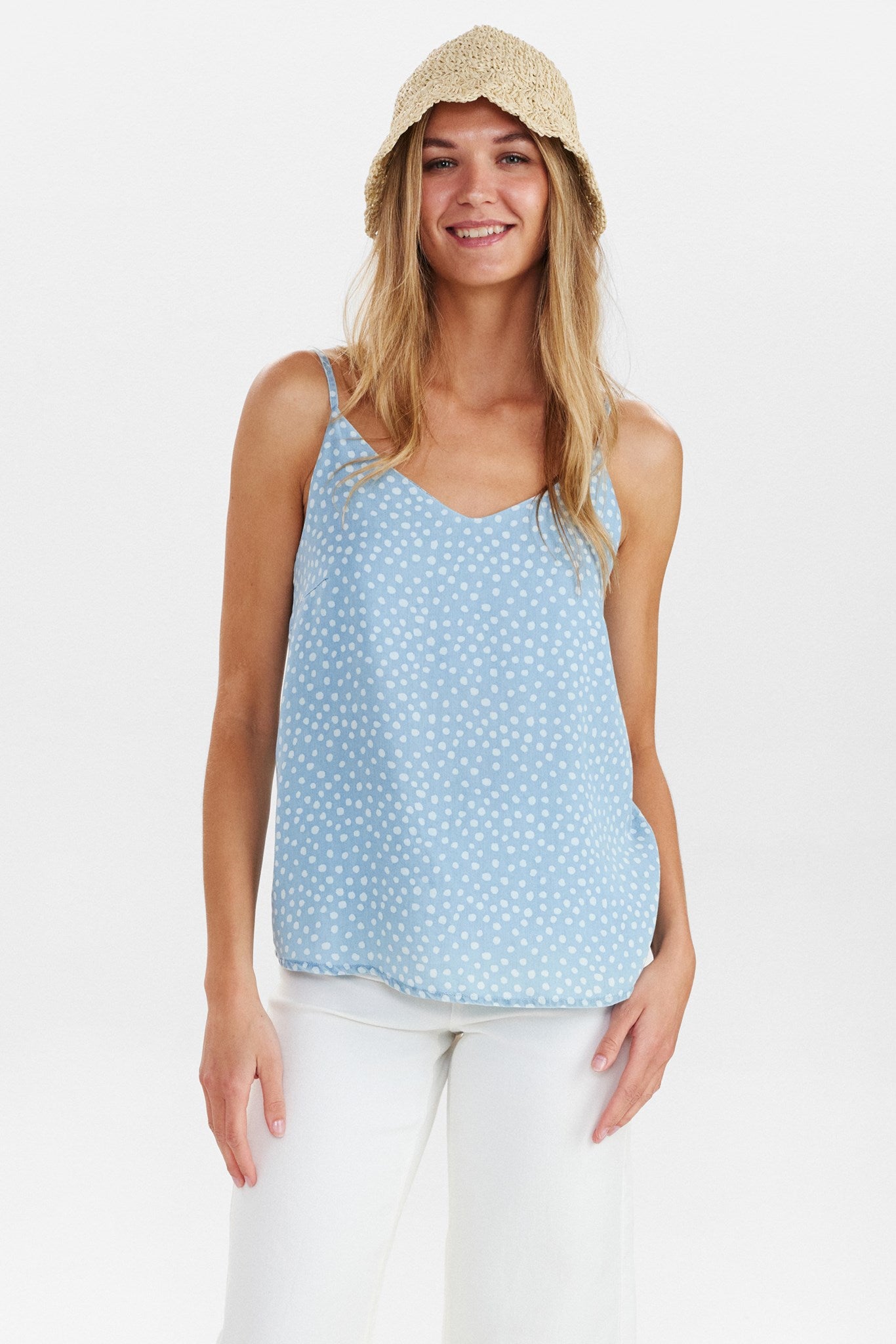 NUPOULINA STRAP TOP - Medium Blue Denim