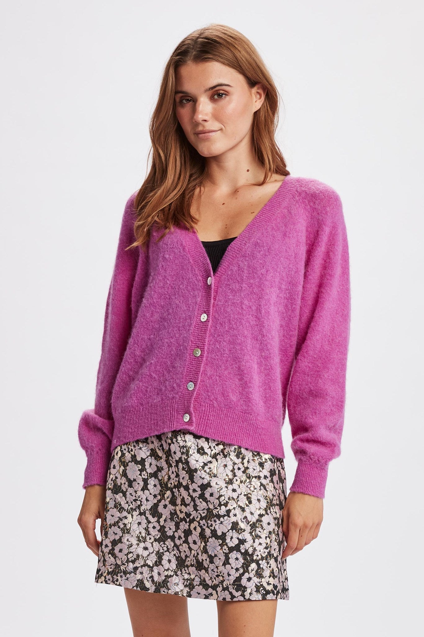 NURIETTE V-NECK CARDIGAN - Vibrant Orchid